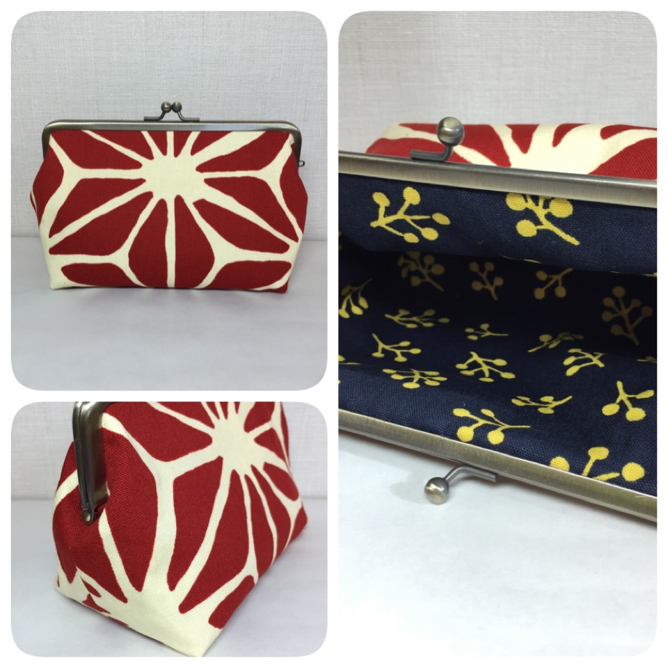 『紅の麻の葉柄 たっぷり入るがま口ポーチ』を出品いたしました。